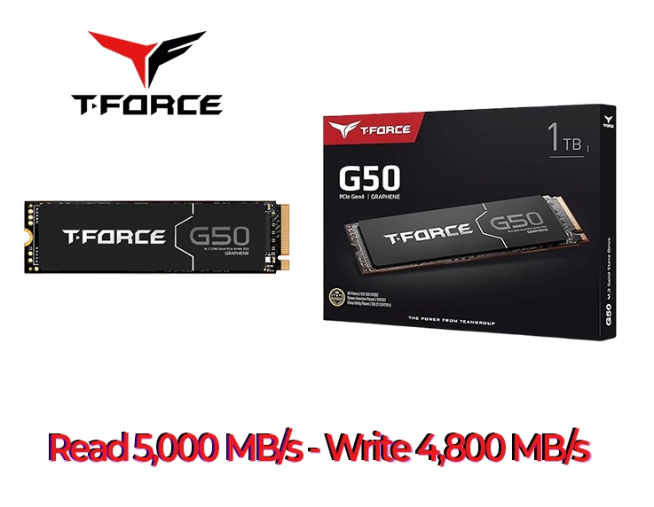 T-FORCE G50 M.2 PCIE GEN4X4 NVME SSD 1TB Upto R/W 5000/4800 MB/S 3 years Warranty TM8FFE001T0C129
