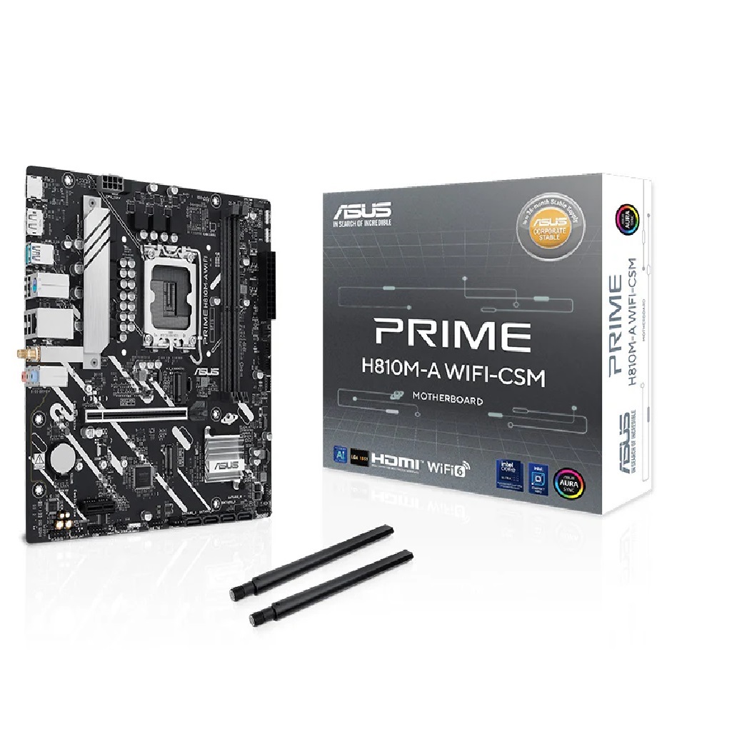 ASUS PRIME series motherboards are expertly engineered to unleash the full potential of the latest Intel® Core™ Ultra Processors (Series 2). Boasting a robust power design, comprehensive cooling solutions and intelligent tuning options, the PRIME H810M-A WIFI-CSM motherboard provides users and PC DIY builders with a range of performance optimizations via intuitive software and firmware features. It’s designed to be Advanced AI PC-ready, offering the power and connectivity needed for demanding AI applications.