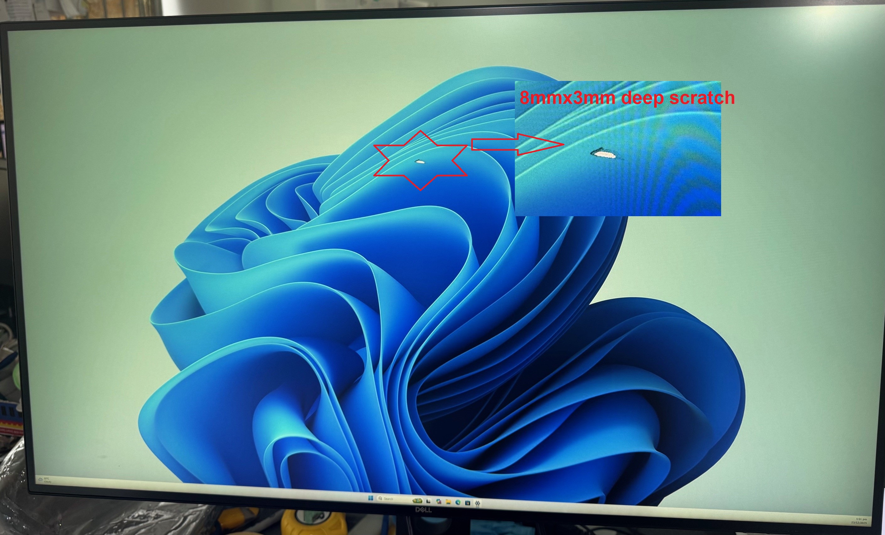 Condition: The LCD has been tested in good working condition but there is a deep 8x3 mm scratch, refer photos. and apart from this, the monitor is tested fully functional, and it is an off-leased items so please expect minor scratches and sticker residue on frames and back, we rated the condition as B Grade with 3 months Warranty