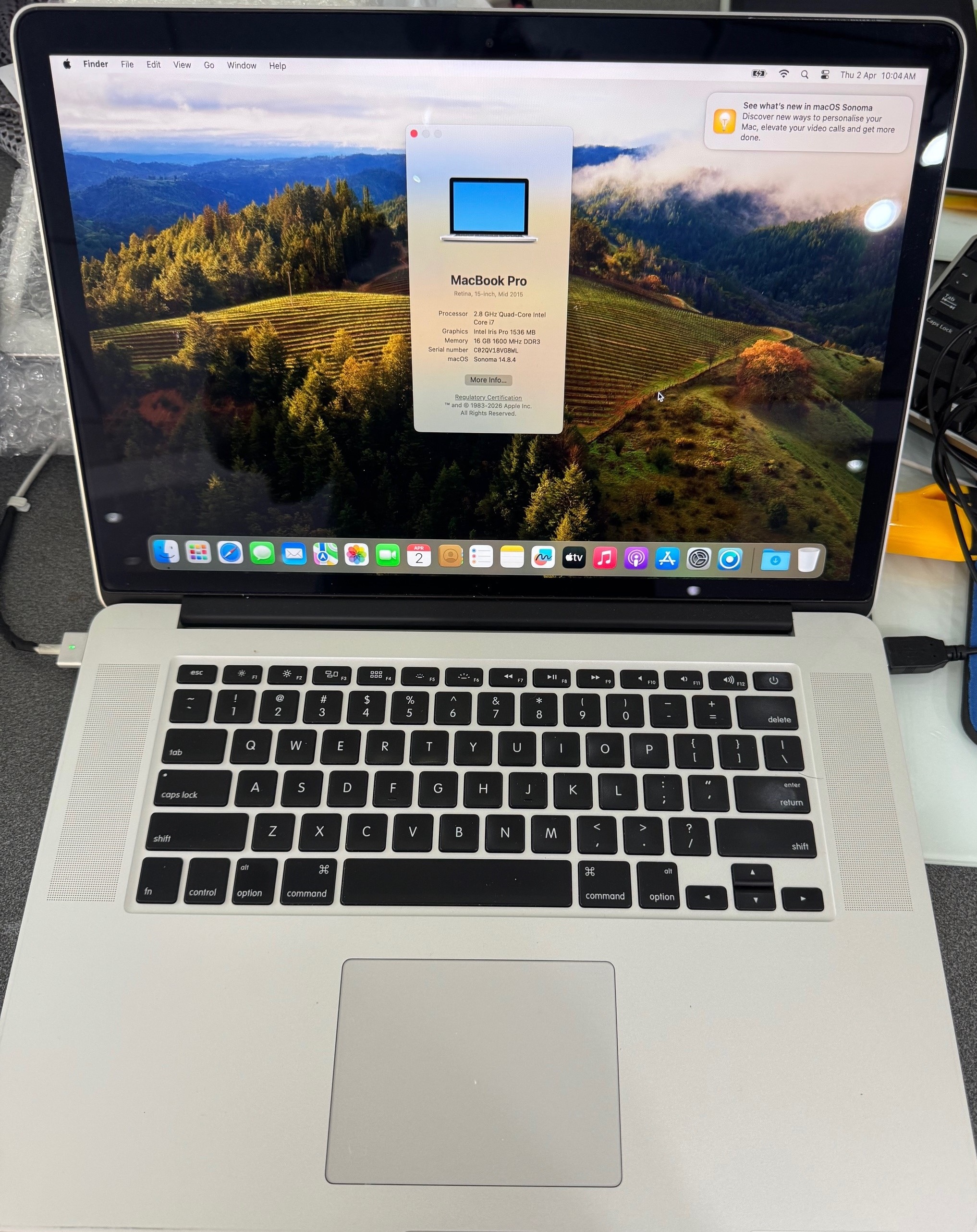 MacBook Pro Retina 15-inch mid 2015 A1398 Core i7 2.8ghz 16GB Ram 512GB SSD MacOS 14 Sonoma by OpenCore Legacy Patcher Off-leased A Grade 3 months Warr