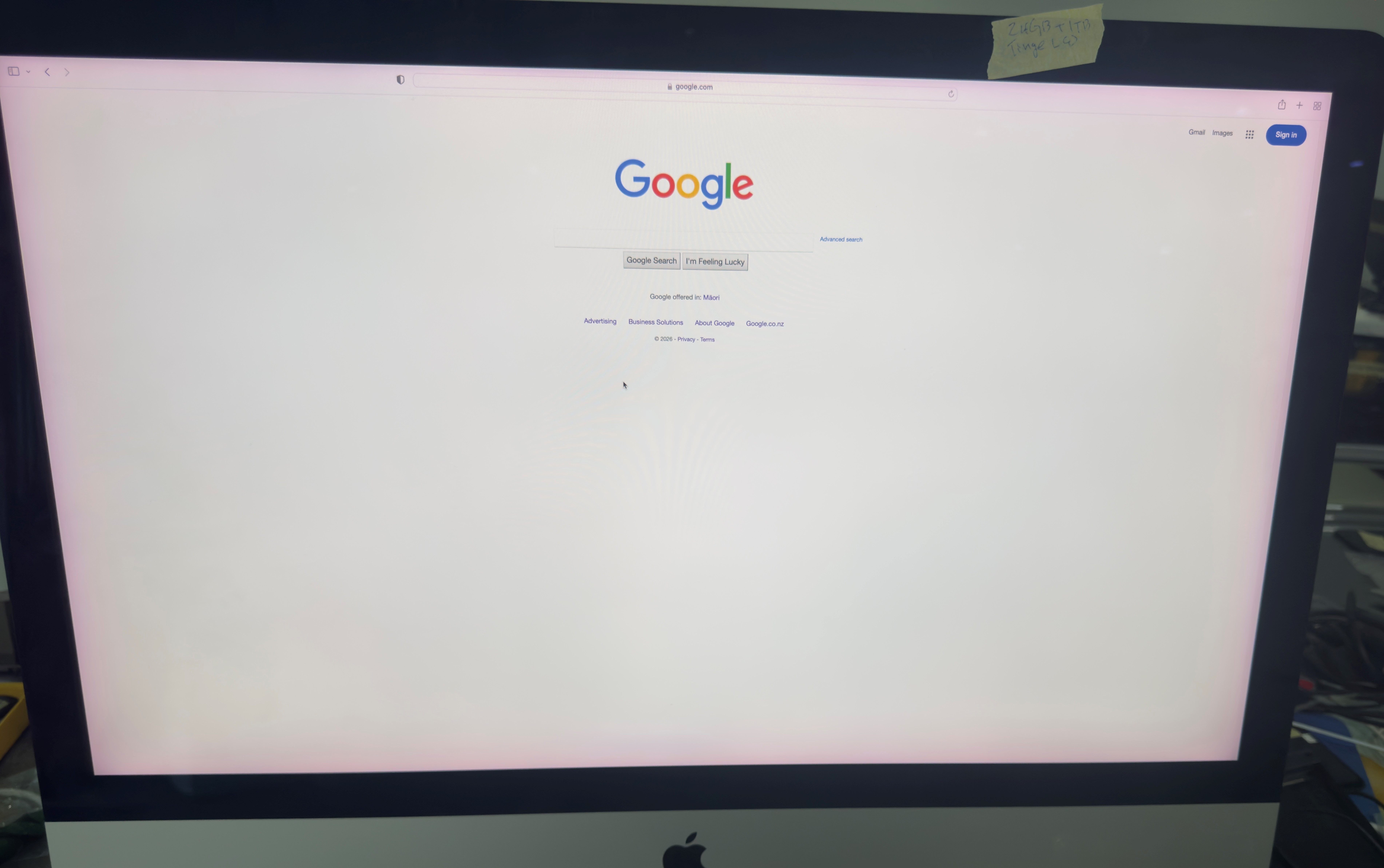 - Appearance: There is a subtle pinkish tint visible around the borders of the display, most noticeable on white or light-coloured backgrounds.
