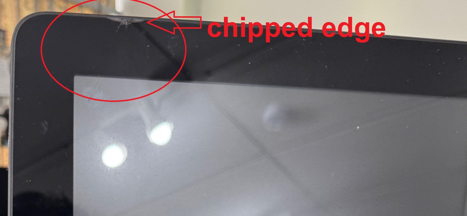B Grade - The Screen has a chipped area on the left top side as per photos, but wont affect the touch function and hardly noticeable, the PC is working fine as it should.